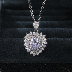 💎 Heart Full CZ Diamonds 925 Silver Plated Heart Necklace for Women, EVGG1107