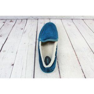 LL Bean Blue Suede Fleece Lined Mountain Moccasins Slipper Size 9 M