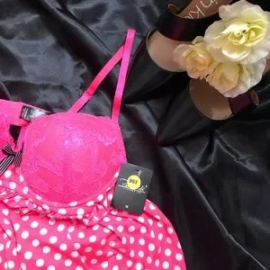 This delicate pink and white polkadots flirty babydoll piece. Fulfill your fantasies in this lingerie set. Cute satin bow in the front, adjustable straps, matching thong. Push-up cups. Gorgeous and seductive to draw your lover's attention.