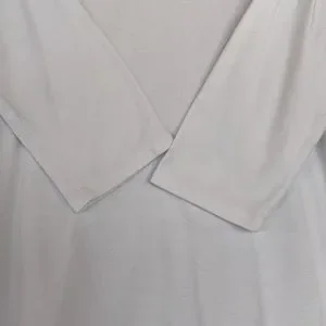 In gently used condition. 3/4 sleeves, v-neck and side slits. 60% Cotton and 40% Poly. Approximately 22” pit to pit and 28” shoulder to hem.