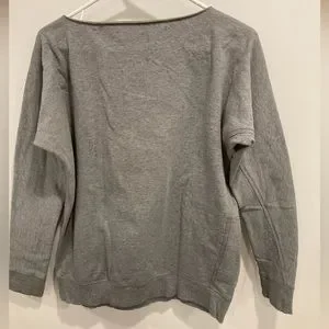 Dolman sleeve boat neck long sleeve heather grey sweatshirt.
