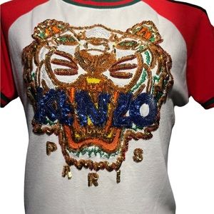 KENZO bling tiger top in size Medium. Absolutely gorgeous. Maximum bling. Green and red detail around neck , arms and bottom. EUC. Beautiful colors. Different color sequins. ATO