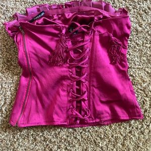 Y2K Pink Bebe Lace Up top