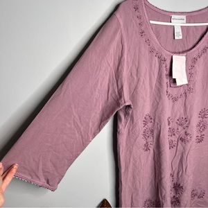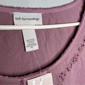 NWT Soft Surroundings Soft Rayon Beaded/Embroidered Top Lilac
