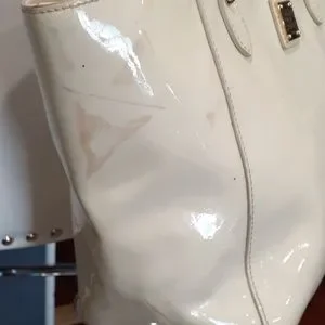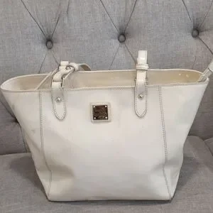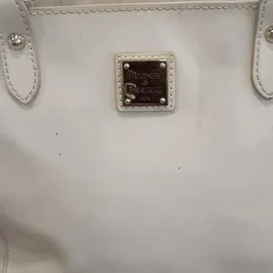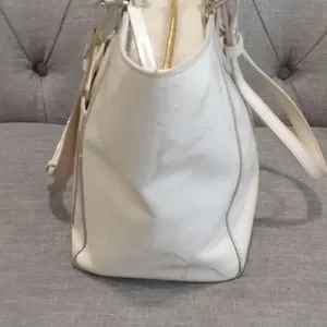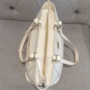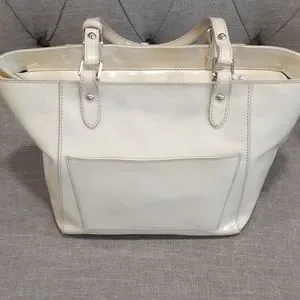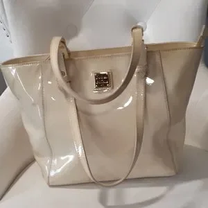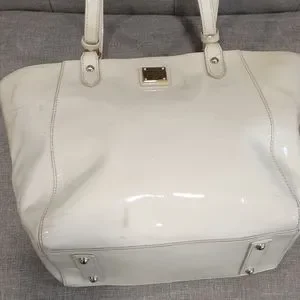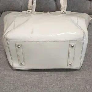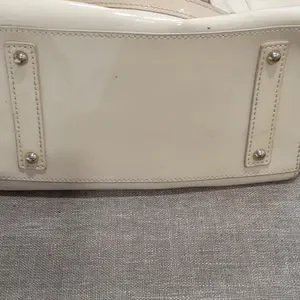 Dooney & Bourke cream off white patten leather tote shoulder bag preowned condition with some minor wear staining at bottom and side nothing major, very clean inside, zipper pocket inside along with card holder,from pet and smoke free home,lots of life left in this beautiful bag.
