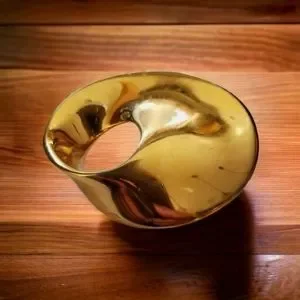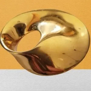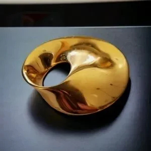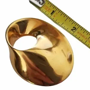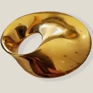 Vintage Monet brooch features a modernist oval design and a shiny gold tone metal finish.