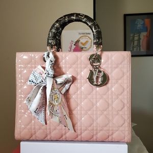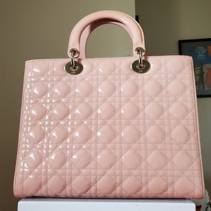 Lady Dior pink patent silver hard ware large bag