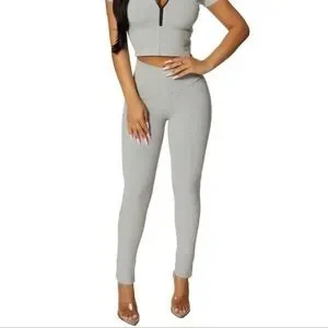 NAKED WARDROBE | Grey Snatched Down Ribbed Leggings