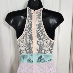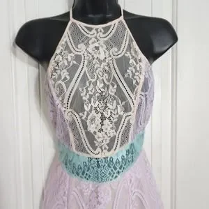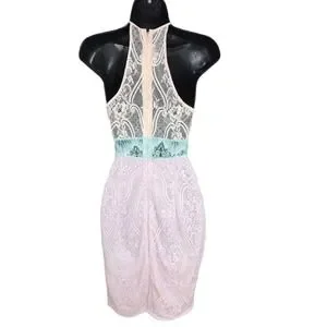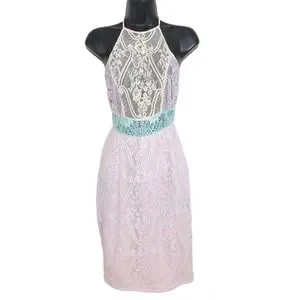 House of CB Womens Dress Alvaro Pink Purple Pastel Floral Lace Halter Bodycon S