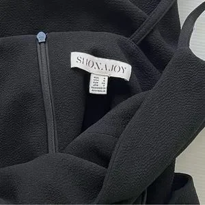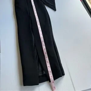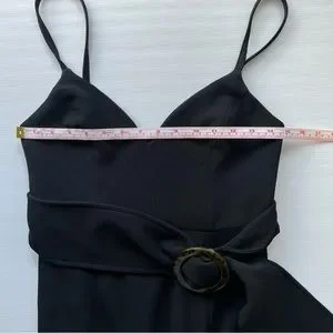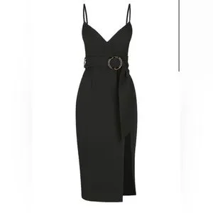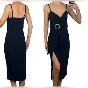 Shona Joy Andrea Fitted Cocktail Dress Black Belt Waist Midi Slit Size S 8