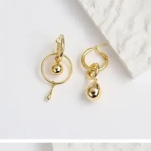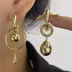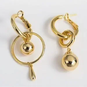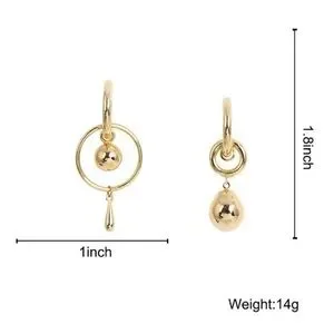 Gold Plated Mismatched Metal Ball Dangle Drop Earrings