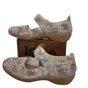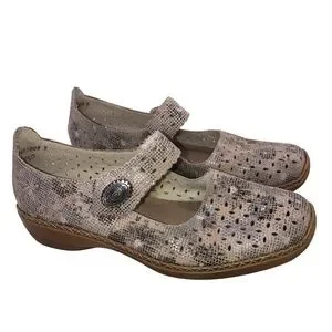 RIEKER ANTISTRESS Leather Mary Jane Shoes, Size 41 (US 9.5) - Perforated Design