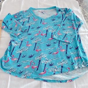 Sunset & Sweet Tea Flamingo palm trees in Turquoise SZ L ADORABLE!!! Very soft