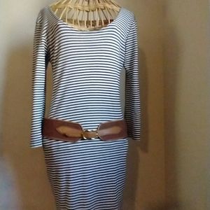 Gorgeous Easy wear, Casual lightweight,Cotton Poly blend Dress. Excellent Condition like New. One time wash. non-smoke, non perfumes. 33"L, 30"PTP, Quarter length sleeve 13". Belt not included.