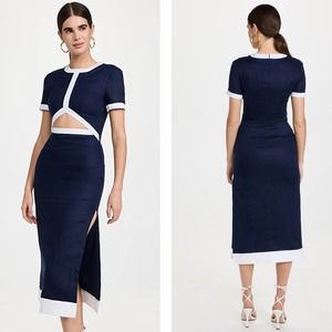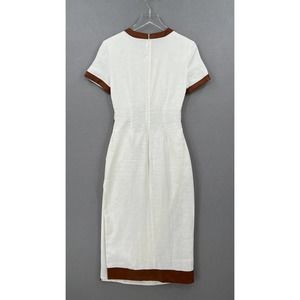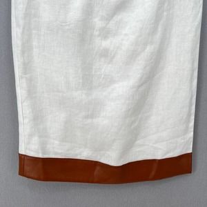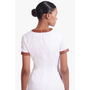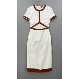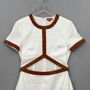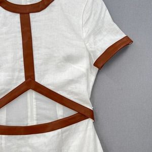 STAUD Dress Womens Small White Whiskey Perla Midi Linen Cut Out Sheath Leather