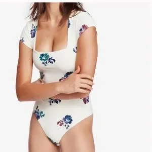 Free People fp Intimately Printed Square Eyes Ivory Floral Print Bodysuit