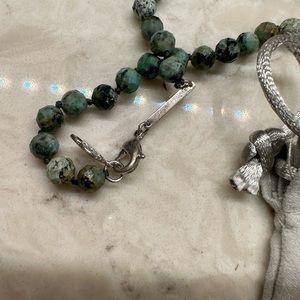 Prettiest Kendra Scott tassel necklace and earring set you’ll find. Aqua green with brown look stones set in KS silver finish, perfect condition. Rare and retired!