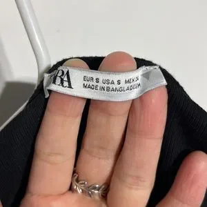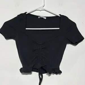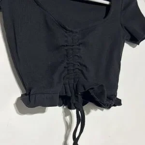 ZARA Black Cinched Front V-Neckline Ruffle Hem Short Sleeve Crop Top Size Small