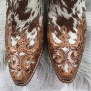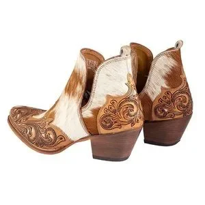MYRA Western Boho Horse Jane Tooled Leather Hairon Calf-Hair Ankle Booties 10