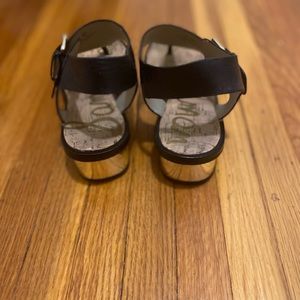 Sam Edelman black leather sandals with gold heel