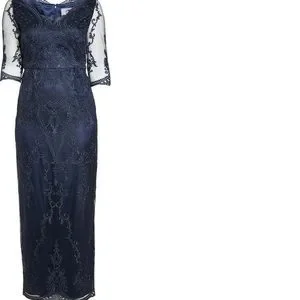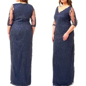 NWT JS Collection Scallop V Neck Embroidered Mesh Gown Size 16W
