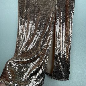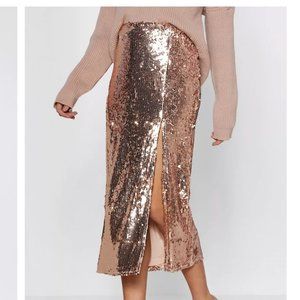 Nasty Gal Rose Gold Sequin Split Thigh Midi Skirt
