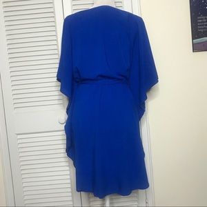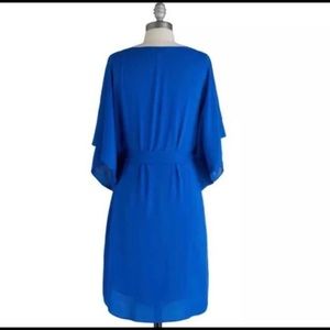 New without tags. Never worn. Purchased on Modcloth but brand is Jack by BB Dakota. Vibrant blue dress features blue neckline, front snap closure, and removable/adjustable sash ties at waist. Fabric does not provide stretch. Comes from a smoke-free/pet-free home.