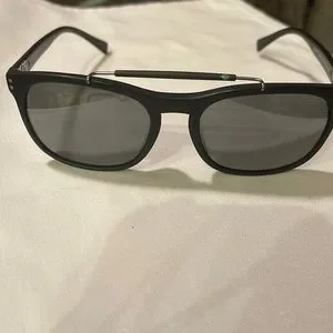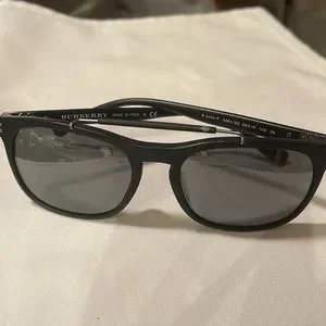 BURBERRY 4244-F3464/6G 56 19 145 Men’s square black plastic frames, gray mirrored lenses. Cool gray/silver top bridge. Lightweight & comfortable. Excellent condition, never worn. Comes with a soft case & cleaning cloth.