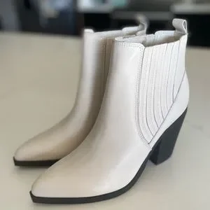 NWOT Marc Fisher Women's Matter Block Heel White Pointed Toe Booties Ankle Boots
