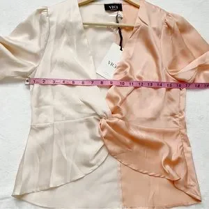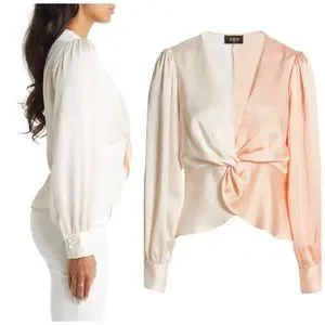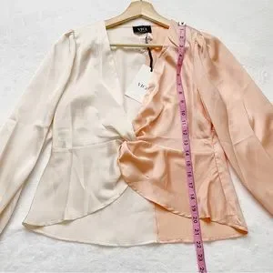 NWT Peach & Cream Color Block Twisted Front Blouse