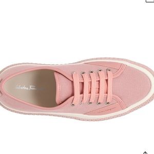 New Designer Salvatore Ferragamo Pink SNEAKERS Lace-up Storm Shoes womens size 7.5 C NIB with original box, extra shoe laces and dust bag. Note - The “C” indicates a wide width, but I would not consider these wide, based on traditional sizing, but only for designer sizing.