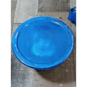 It is in almost perfect condition with just one tiny 1/8th of an inch chip on the inside rim. This is an easy fix or you can leave as is.