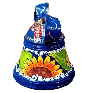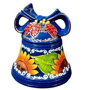 Cobalt Blue Mexican Talavera Sunflowe Bell Pottery Kitchen Canister Cookie Jar