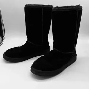 Koolaburra by UGG Black Leather Suede Calf Boots Y2K Faux Fur Lined Women Size 7