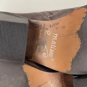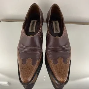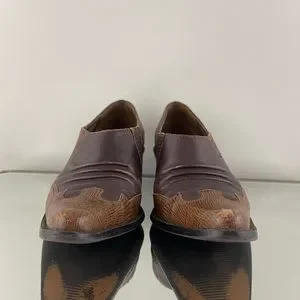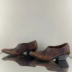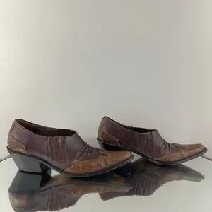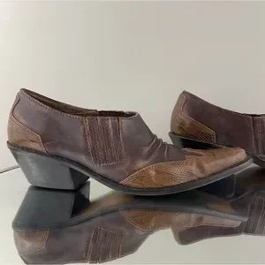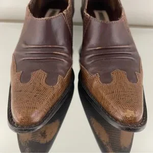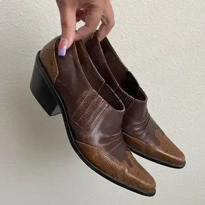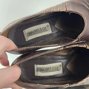 MATISSE Vintage Brown Leather Western Pointed Toe Slip On Heel Mule Ankle Boots