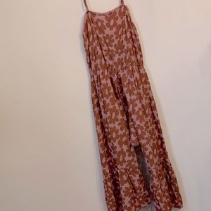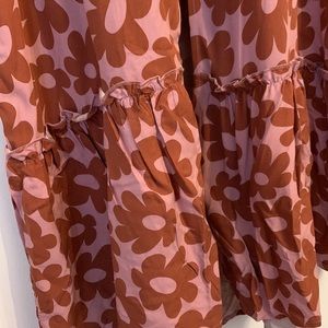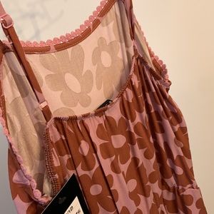 Art class sundress for girls, with retro inspired flowers, adjustable straps, and shorts that are attached (inserted) underneath.