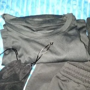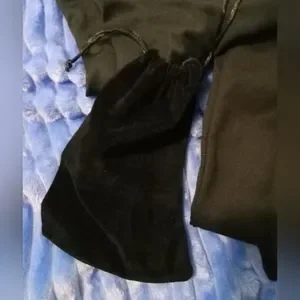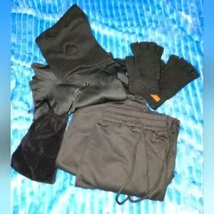 Each costume includes a face mask with holes for the eyes and mouth. Also, gloves which leave the fingers open to see. Also, a short-sleeved black t-shirt, black drawstring pants/jogger style and a jewelry bag. What you choose to keep tucked away in it is at your discretion. The pants have drawstrings so you can tighten them at the waste. The jewelry bag has drawstrings too.