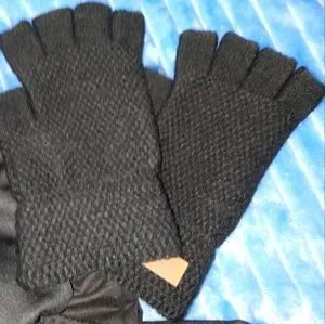 With it, a handmade sign that says, "I thought I got away with it.". This is funny because the gloves leave the fingertips visible.