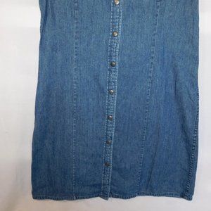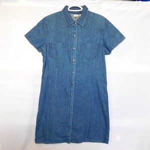 LL Bean Womens 14 Snap Front Blue Denim short sleeve Midi Dress