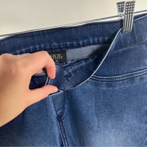 NWT Medium Wash Denim Mid-Rise Frayed Edge Leggings - Hue Studio