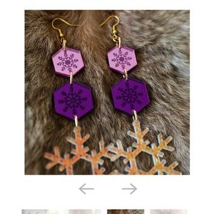 Indi City MAHKAKONAKOW Purple and Pink holiday statement earrings. Brand new, never used. Indigenous brand, owned and crafted.