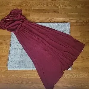 Don't miss this darling Maroon colored chiffon Maxi dress made by Cupshe! New With Tags! So perfect for a fun night out, family pictures or wedding. Women's Size Small, does seem to be a true to size fit.