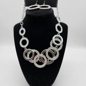 GORGEOUS SILVER TONE CRYSTAL ENCRUSTED NECKLACE WITH MATCHING EARRINGS......Comes as a complete set with matching earrings as seen!! in photo. simply dazzling