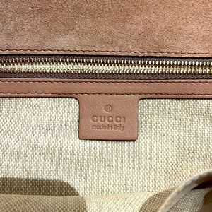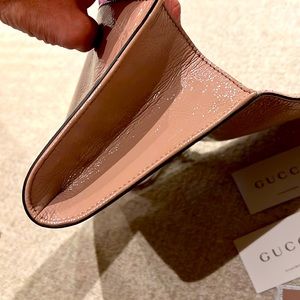 Classic nude patent leather clutch by Gucci. Dust bag and credential cards and fabric patch included. Like new. No flaws!
