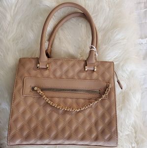 Chain Accent Quilted Structured 2-Way Satchel Bag Handbag.