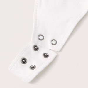 On-trend bodysuit featuring v-neckline with tie-front detail, flutter sleeves, two-snap closure at bottom and back smocking for the perfect fit. Imported.