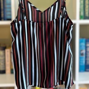 Halogen V-Neck Striped Adjustable Straps Tank Top Camisole Size M