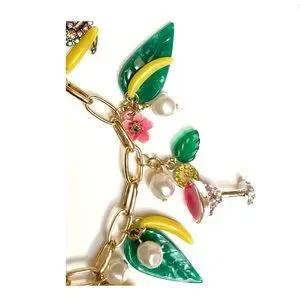 - ISLAND TIME HULA Gold Tone Metal Glass Stone/ Resin/ Enamel & Faux Pearls Chain Bracelet