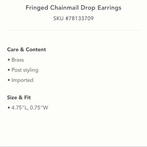 Anthropologie NWT Fringed Chainmail Drop Earrings.