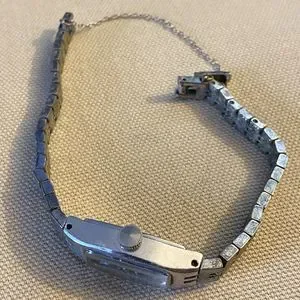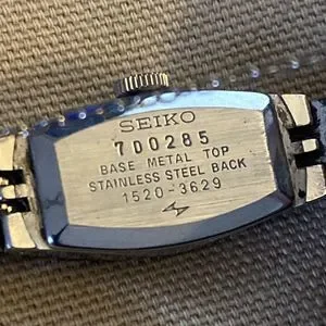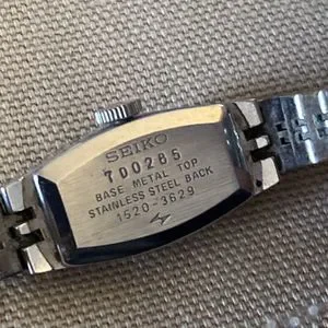 Vintage Seiko Watch Women Silver Tone Rectangle Case Blue Dial Manual Wind 6.25".